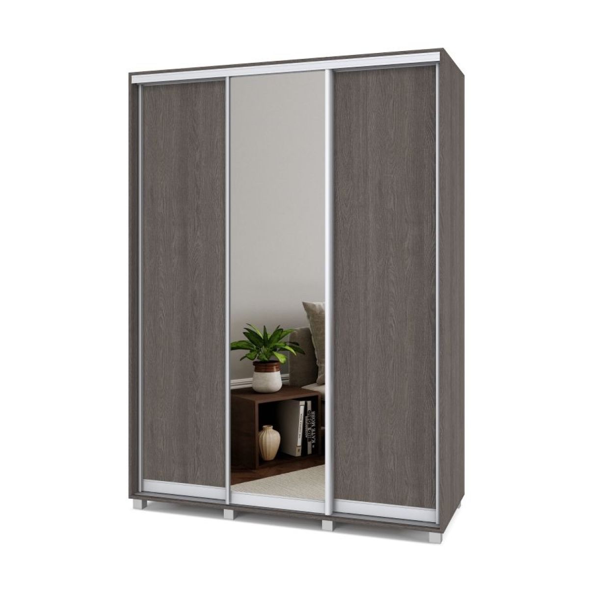 РОЛАНД Шкаф-купе с зеркалом Анкор темный (450*1600) Р462